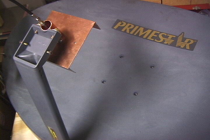 A piece of 3/4 inch copper piping makes a tight fit with the mount supplied on the Primestar dish