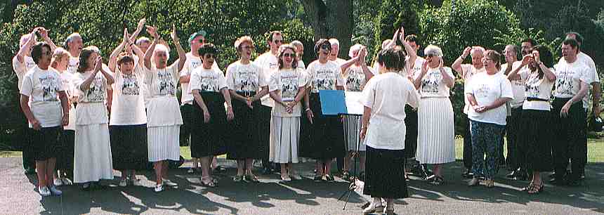 The Festival started on Sunday Aug 4 with sing-alongs around Buxton. One of the most organized (and vocal) groups that morning was from the Bournemouth G&S Society (+1 guest from Australia). Here they are performing outside the Octagon.(clickable image)