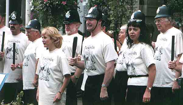 While Kenneth Sanford is still performing almost as well as he ever has. Here he is in his "master class" showing what a Grenadier Guard (Private Willis) should really look like. (the 'rifle' is a borrowed walking stick) (clickable image)