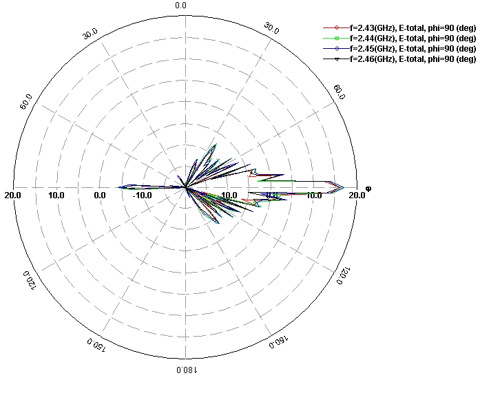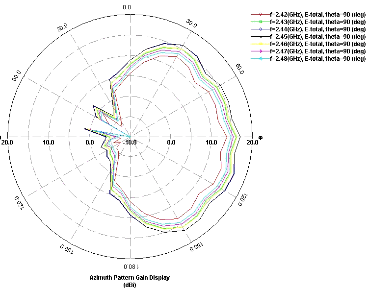 Note that the gain vs frequency curve is peaked at 2440, and it radiates well over all 14 channels.